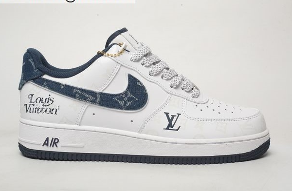 Mens & Womens Nike Air Force 1 Low Custom LV White Navy-Blue Denim